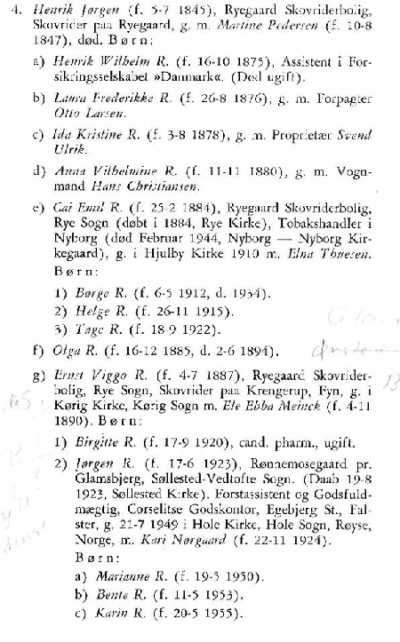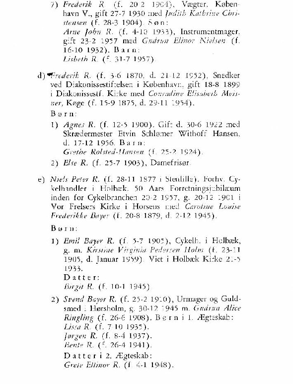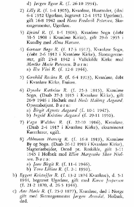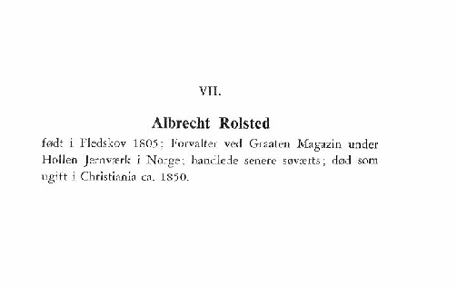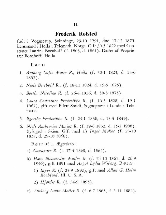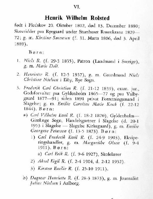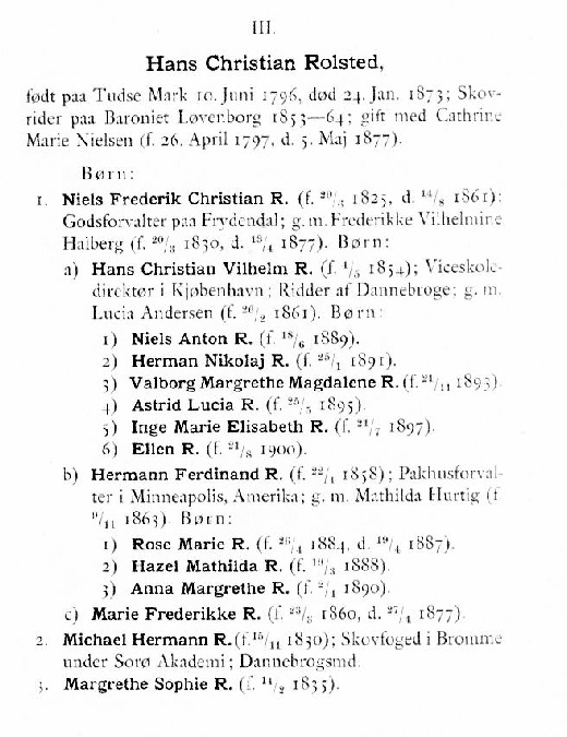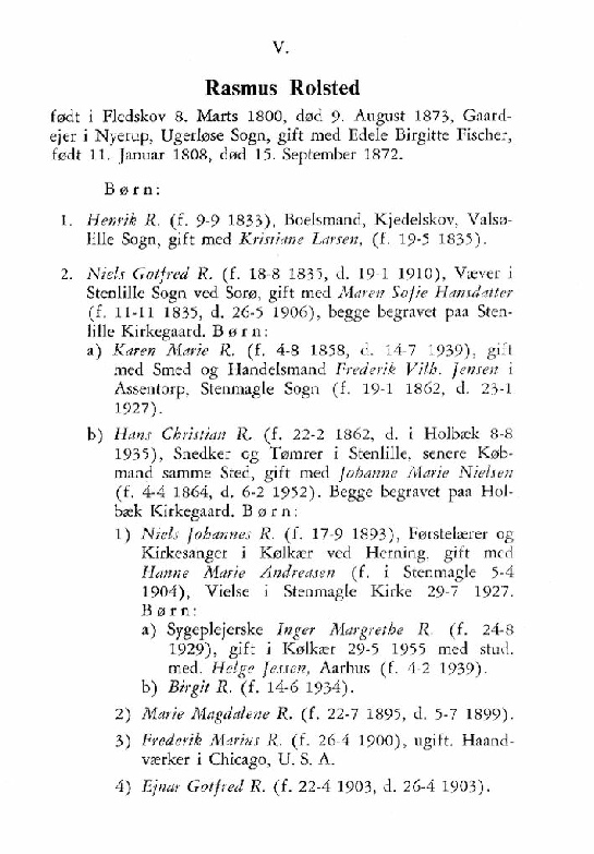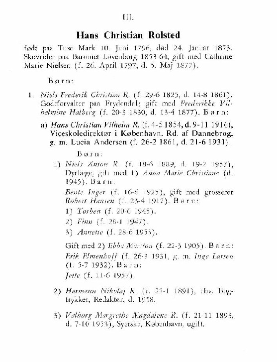 Derefter følger kopier af slægtsbogen udgivet i 1960. Indholdet er suppleret og videreført af Dyrlæge Niels Anton Rolsted som døde i 1957, hvorefter den endelige udgave er færdiggjort af, Dyrlæge Ebba Rolsted, Førstelærer Johannes Rolsted Frk. Else Rolsted, Tømremester Peder Rolsted og Cyklefabrikant Kai Rolsted.. Ialt 20 sider med 355 personer.