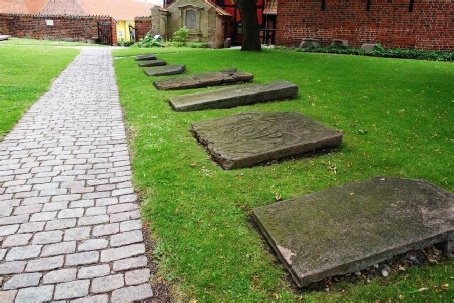 Jacob Borthigs kone Gedske Jensdatter var datter af afdøde købmand Jens Madsen. Jens hørte til de velaflagte borgere i byen og da han døde i 1629, blev han begravet i kirken. Gravstedet lå ved bloggen i det søndre sideskib.