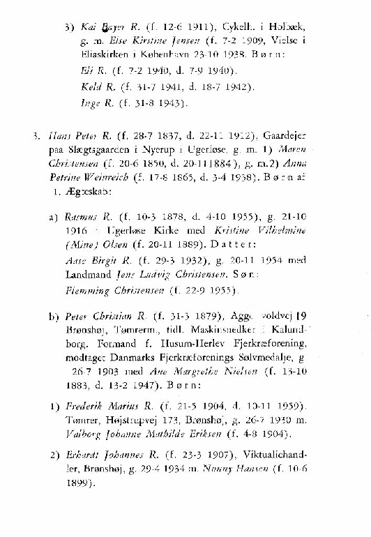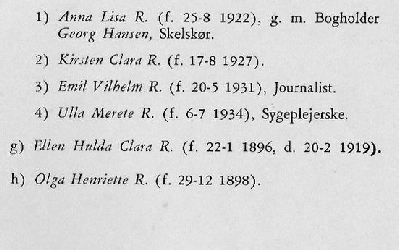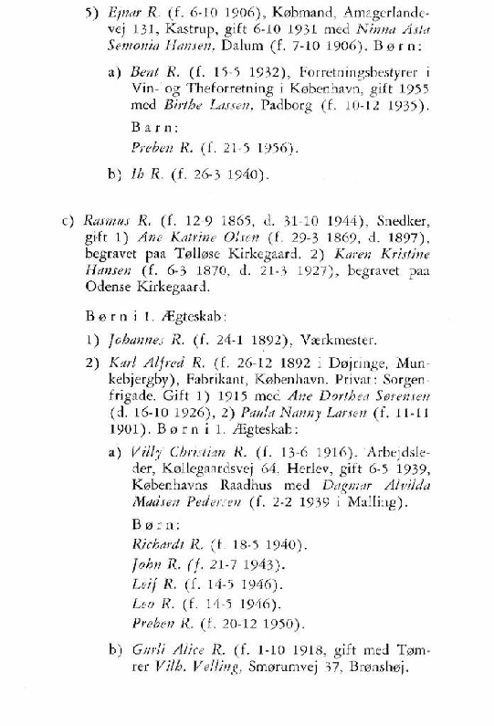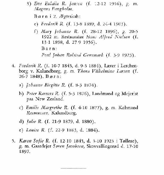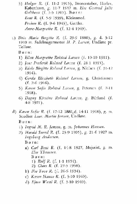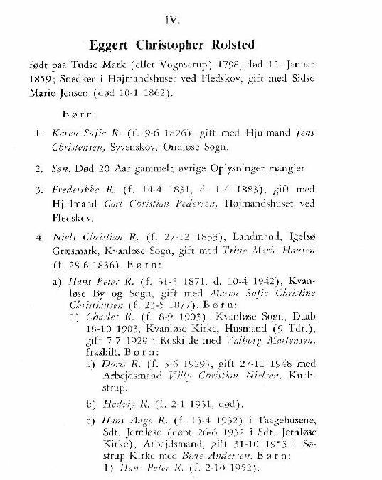 Derefter følger kopier af slægtsbogen udgivet i 1960. Indholdet er suppleret og videreført af Dyrlæge Niels Anton Rolsted som døde i 1957, hvorefter den endelige udgave er færdiggjort af, Dyrlæge Ebba Rolsted, Førstelærer Johannes Rolsted Frk. Else Rolsted, Tømremester Peder Rolsted og Cyklefabrikant Kai Rolsted.. Ialt 20 sider med 355 personer.